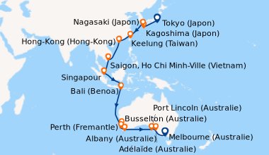 Pour les escales au Vietnam, en Chine et en Indonésie, un visa de transit, dont s'occupent en général les compagnies de croisière, est obligatoire et sera facturé dans le cadre de vos dépenses à bord.