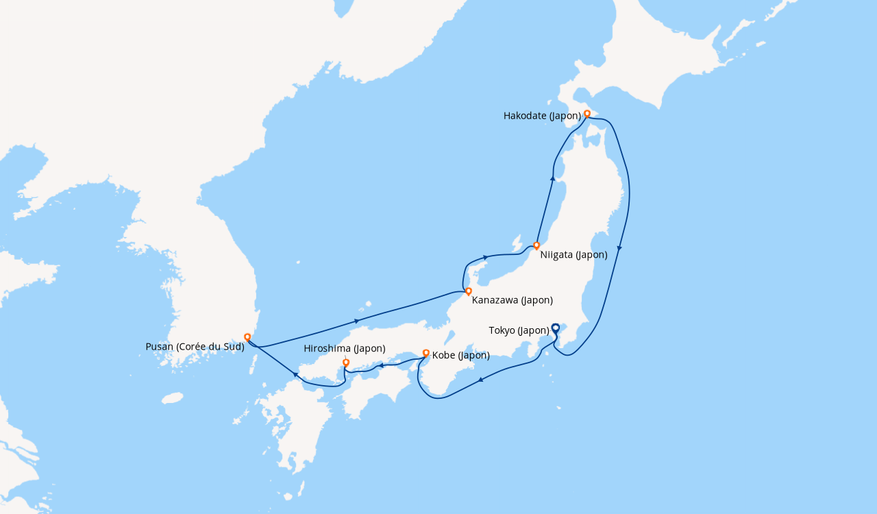 Une taxe locale japonaise (env. 1 000 ¥/passager) peut être appliquée pour les croisières faisant escale au Japon. Elle peut être facturée avant départ ou prélevée à bord selon la compagnie.
