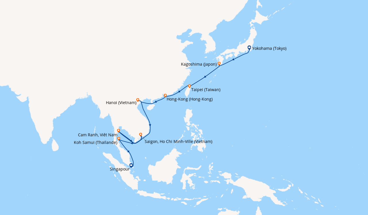 Une taxe locale japonaise (env. 1 000 ¥/passager) peut être appliquée pour les croisières faisant escale au Japon. Elle peut être facturée avant départ ou prélevée à bord selon la compagnie.