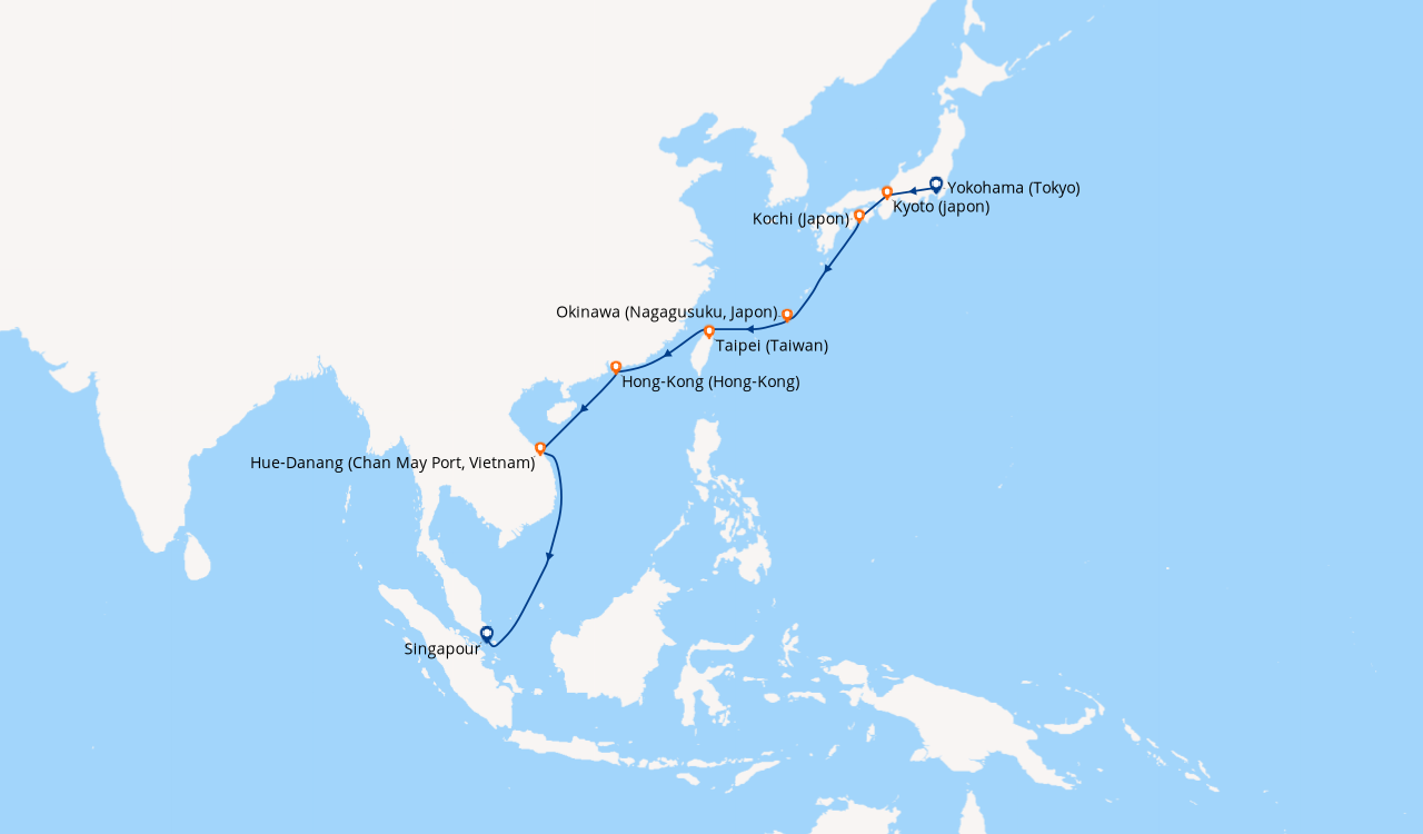 Une taxe locale japonaise (env. 1 000 ¥/passager) peut être appliquée pour les croisières faisant escale au Japon. Elle peut être facturée avant départ ou prélevée à bord selon la compagnie.