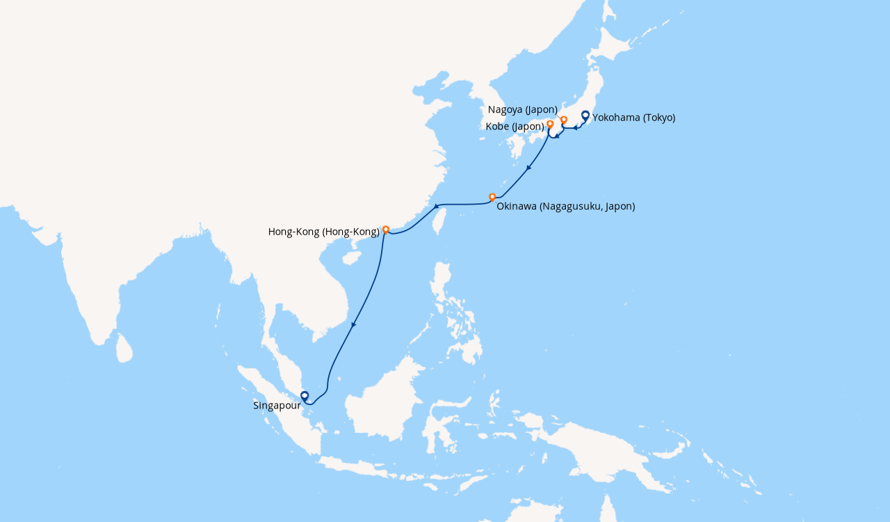 Une taxe locale japonaise (env. 1 000 ¥/passager) peut être appliquée pour les croisières faisant escale au Japon. Elle peut être facturée avant départ ou prélevée à bord selon la compagnie.