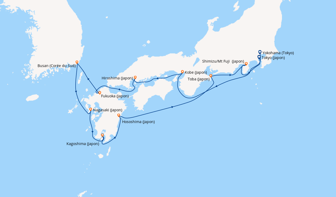 Une taxe locale japonaise (env. 1 000 ¥/passager) peut être appliquée pour les croisières faisant escale au Japon. Elle peut être facturée avant départ ou prélevée à bord selon la compagnie.