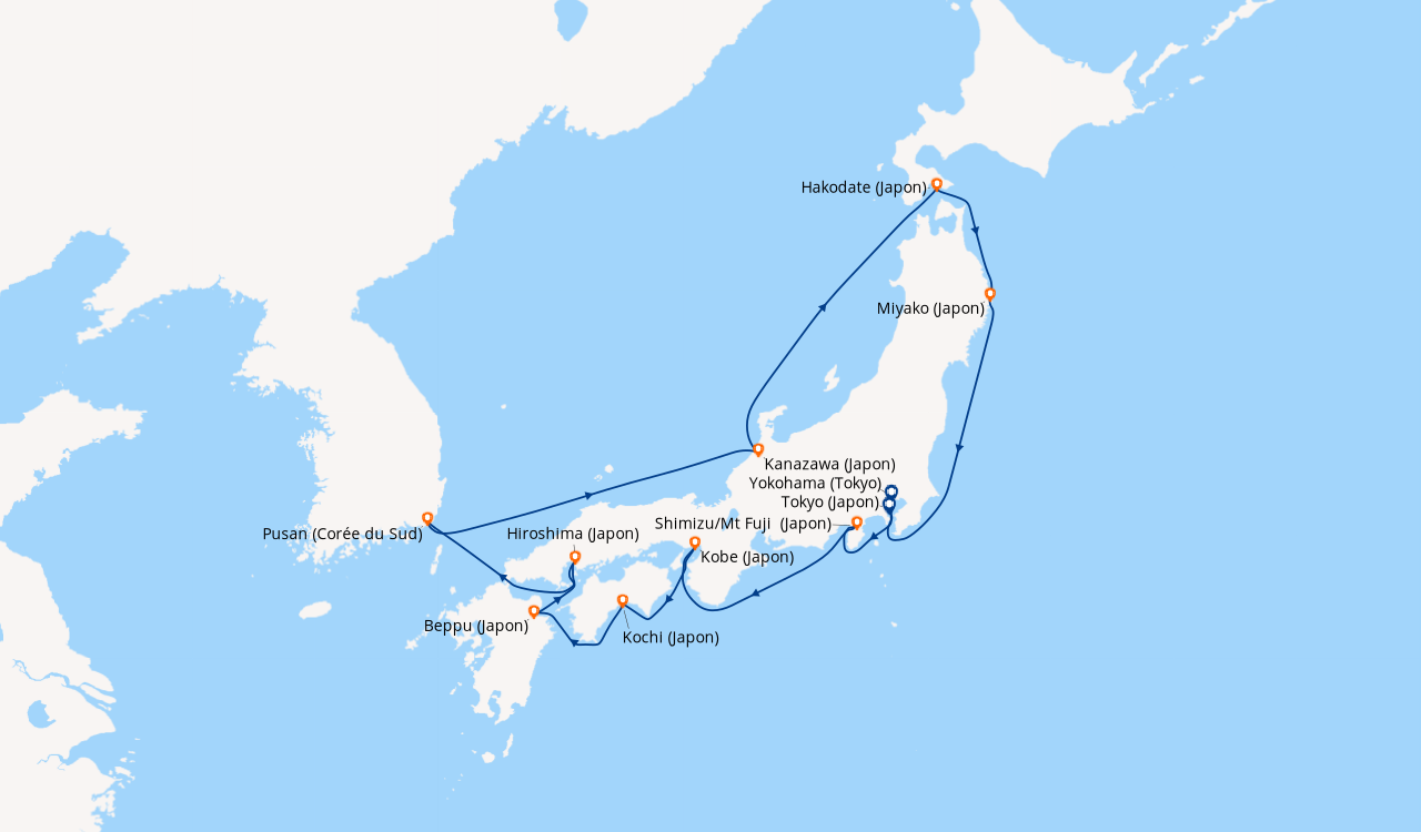 Une taxe locale japonaise (env. 1 000 ¥/passager) peut être appliquée pour les croisières faisant escale au Japon. Elle peut être facturée avant départ ou prélevée à bord selon la compagnie.