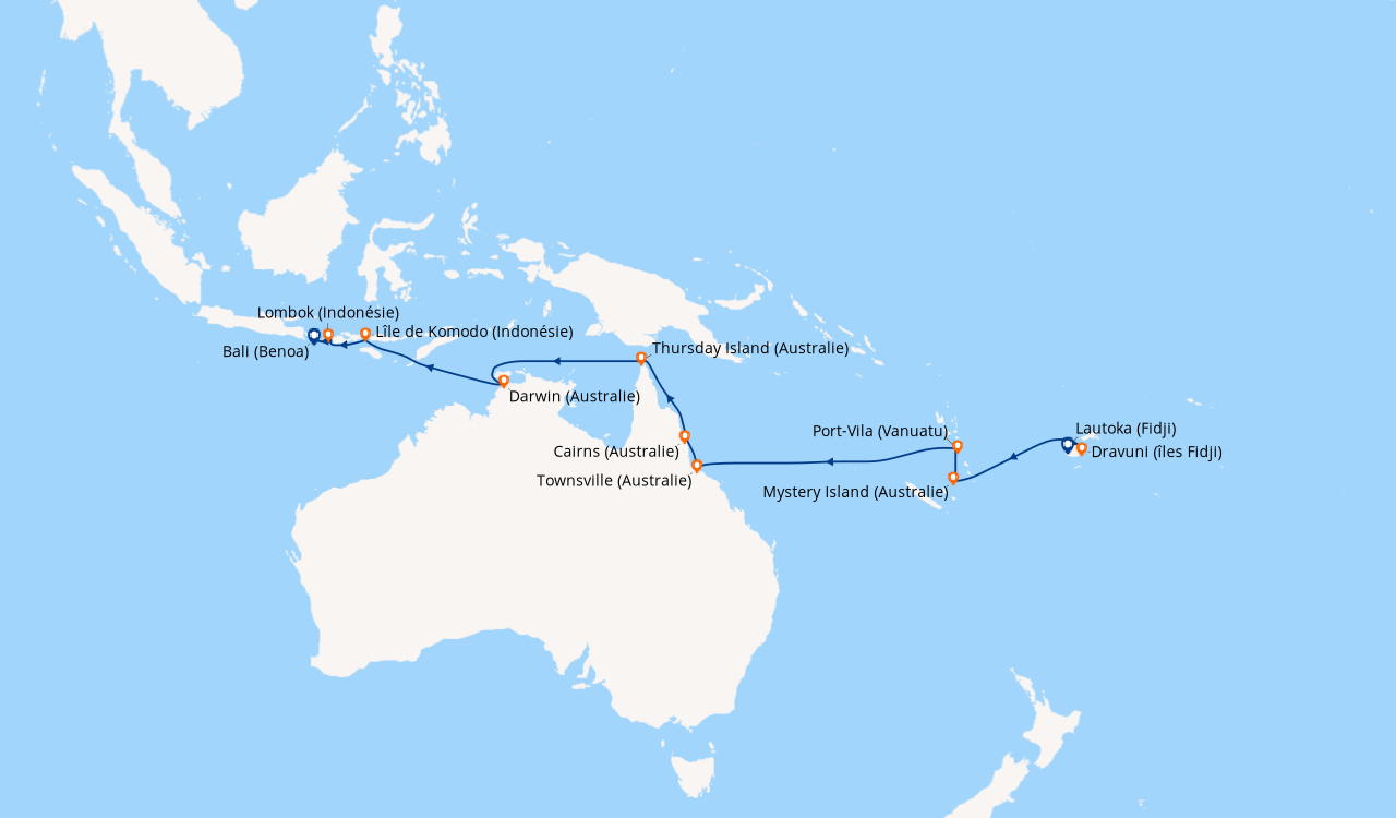 Pour les escales au Vietnam, en Chine et en Indonésie, un visa de transit, dont s'occupent en général les compagnies de croisière, est obligatoire et sera facturé dans le cadre de vos dépenses à bord.