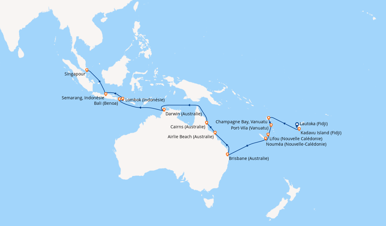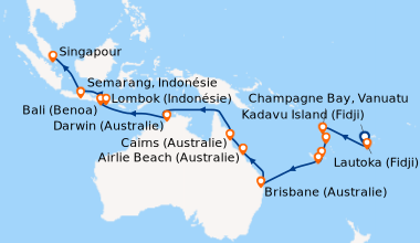 Pour les escales au Vietnam, en Chine et en Indonésie, un visa de transit, dont s'occupent en général les compagnies de croisière, est obligatoire et sera facturé dans le cadre de vos dépenses à bord.