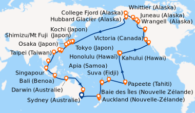Une taxe locale japonaise (env. 1 000 ¥/passager) peut être appliquée pour les croisières faisant escale au Japon. Elle peut être facturée avant départ ou prélevée à bord selon la compagnie.