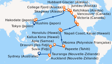Une taxe locale japonaise (env. 1 000 ¥/passager) peut être appliquée pour les croisières faisant escale au Japon. Elle peut être facturée avant départ ou prélevée à bord selon la compagnie.