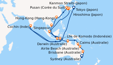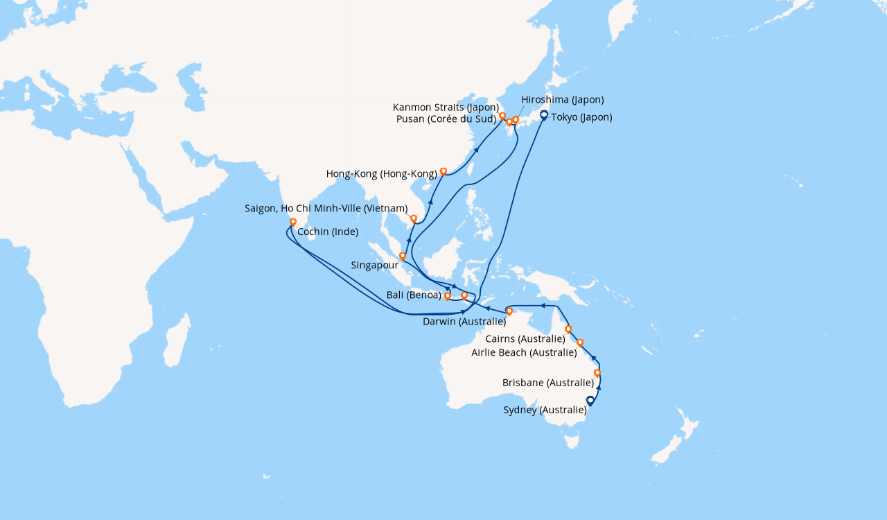 Pour les escales au Vietnam, en Chine et en Indonésie, un visa de transit, dont s'occupent en général les compagnies de croisière, est obligatoire et sera facturé dans le cadre de vos dépenses à bord.