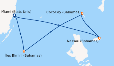 première foie que je laisse un commentaire après une croisiere mais là vraiment content alors dans l'ordre: itinéraire très bien surtout les îles st kitts et Aruba, salle de gym complète, vraiment content de trouver un terrain de basket puisque je vai bientot passer pro, ensuite la piscine bien aussi mais un peu de monde en milieu d'aprem (prévisible), 2 restos de spécialité que je recommande: Chops grill et les pizza sorrento très pro, et la cabine petite mais en même temps je suis pas parti pour dormir