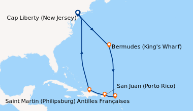 En Janvier de Fort Lauderdale (Port Everglades) aux Caraïbes orientales. Nous faisons de nombreuses croisières chaque année. A l’occasion de notre 45e anniversaire de mariage nous avons choisi de nous offrir une suite junior pour changer. La cabine junior N° 9548 est bien située car pas trop éloignée des ascenseurs, très calme bien que située à l’avant. Durant le séjour, nous prenons nos déjeuners dans le windjammer qui propose une cuisine correcte, variée, mais pour dîner nous préférons la salle à manger. Installés sur le pont 4 avec 4 autres convives avec qui nous avons sympathisé, nous bénéficions d’un service très professionnel, d’une cuisine qui nous satisfait amplement car nous trouvons toujours quelque chose à notre goût sur le menu. Nous n’avons pas assisté aux spectacles car déjà vu auparavant. J’aime déambuler dans La Royal promenade, elle est très propre, comme l’ensemble du navire, très animée, bien décorée, avec de belles boutiques, bars restaurants, dont mon préféré est le Café Promenade. De sa terrasse, on peut voir défiler les passagers, en se régalant d’une de leurs succulentes pâtisseries. Si Saint-Kitts et Nevis sont dans vos projets de visites, je vous conseille vivement de former un groupe et d’aller avec Island Excursions Grey pour un divertissant et instructif tour de l’île. Ils viennent vous chercher au navire, après la visite on peut se poser plusieurs heures à Reggae Beach. Cette visite est mieux, moins chère que celle proposée par RCI. Je souhaite à tous une mer calme et une agréable croisière.