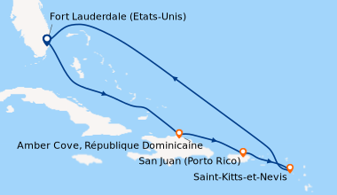 Nous revenons tout juste de notre croisière au départ de Fort laudrdale, nous sommes parti 1 semaine destination les bahamas, globalement saytisfaits mais le temps très changeants avec beaucoup de soleil et des orages par intermittence, compliqué de faire des plans pour les journées d'escale, vous vous en doutez. le bateau est très grand et propre, les animateurs jouenet le jeu mais si vous ne parlez pas du tout anglais à éviter et partez sur autre chose