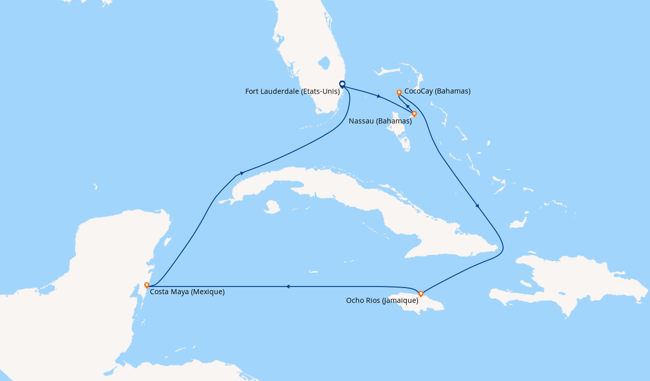 Escapade hivernale dans les eaux chaudes des Caraïbes, au départ de Port Canaveral. C’est notre deuxième croisière avec Explorateur Of The Seas, à notre avis il commence à montrer des signes d’usure. L'équipage fait du bon travail, dans l’harmonie, l’efficacité. La directrice de croisière est dynamique, intelligente, ce qui apporte un plus notre séjour. L'animation est assez bien dans le Théâtre Palace. Les spectacles sur glace sont spectaculaires. Le seul bémol, concerne la salle à manger dont la restauration est en baisse. Les menus sont bons mais les produits sont ordinaires, à part lors de la soirée Homard. Pour une collation rapide, nous préférons le Café Promenade, café-terrasse qui offre des pizzas, sandwichs, fruits, sur la 'Royal Promenade', longue artère centrale du navire. Il faut faire un effort sur la procédure d’embarquement, que nous trouvons confuse, mal organisée mais globalement, ce fut une fois de plus une belle croisière.