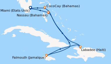 Croisière en Février, à destination des Caraïbe de l’Ouest, embarquement à Fort Lauderdale (Port Everglades) L’embarquement est rapide. Notre cabine balcon sur le pont N°11 du côté droit est parfaitement située pour admirer l’approche des ports aux escales, elle est claire, spacieuse bien agencée, avec une baie vitrée que nous laissions ouverte afin de laisser au lever du soleil, le soin de nous réveiller chaque matin. Le balcon est équipé de deux chaises et une table qui ont servis pour nos petits déjeuners et deux fois pour le déjeuner…