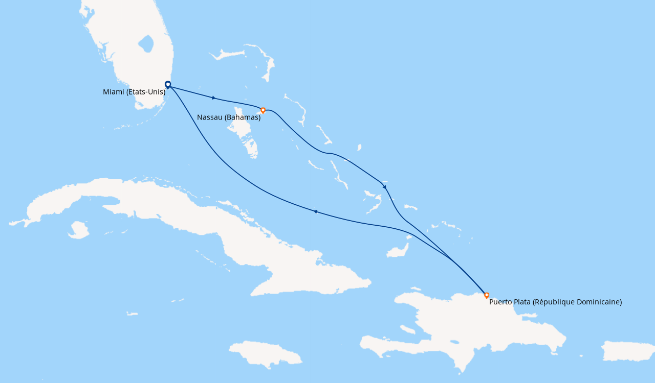 première foie que je laisse un commentaire après une croisiere mais là vraiment content alors dans l'ordre: itinéraire très bien surtout les îles st kitts et Aruba, salle de gym complète, vraiment content de trouver un terrain de basket puisque je vai bientot passer pro, ensuite la piscine bien aussi mais un peu de monde en milieu d'aprem (prévisible), 2 restos de spécialité que je recommande: Chops grill et les pizza sorrento très pro, et la cabine petite mais en même temps je suis pas parti pour dormir