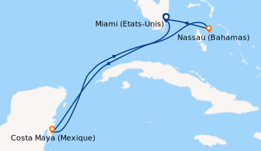 première foie que je laisse un commentaire après une croisiere mais là vraiment content alors dans l'ordre: itinéraire très bien surtout les îles st kitts et Aruba, salle de gym complète, vraiment content de trouver un terrain de basket puisque je vai bientot passer pro, ensuite la piscine bien aussi mais un peu de monde en milieu d'aprem (prévisible), 2 restos de spécialité que je recommande: Chops grill et les pizza sorrento très pro, et la cabine petite mais en même temps je suis pas parti pour dormir
