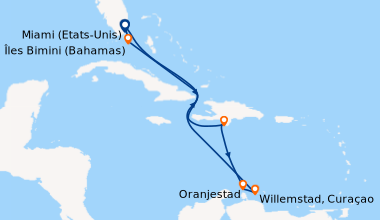 première foie que je laisse un commentaire après une croisiere mais là vraiment content alors dans l'ordre: itinéraire très bien surtout les îles st kitts et Aruba, salle de gym complète, vraiment content de trouver un terrain de basket puisque je vai bientot passer pro, ensuite la piscine bien aussi mais un peu de monde en milieu d'aprem (prévisible), 2 restos de spécialité que je recommande: Chops grill et les pizza sorrento très pro, et la cabine petite mais en même temps je suis pas parti pour dormir
