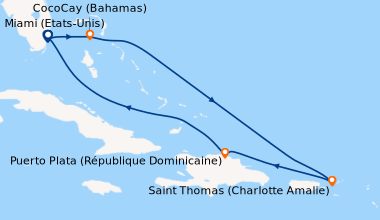 Croisiere au Caraibes , Nouvel an , bateau : Independence of the Seas, au départ de Fort Lauderdale (Port Everglades). 30 minutes après l’embarquement, nous nous retrouvons à la piscine pour regarder les matchs de football sur l’écran géant en attendant d’intégrer nos cabines. La cabine avec balcon sur le pont 6, à l’arrière bâbord du navire est un vrai plaisir que nous savourons pour la première fois. Nos repas sont réservés à 18h00 dans la salle à manger principale, pont N°4. Les plats sont délicieux! Nous profitons d’une ambiance élégante, d’un large choix, de serveurs toujours heureux d'accueillir nos demandes. Nous prenons nos petits déjeuners dans le Buffet Windjammer. Grands choix! Beaucoup de places! Rien à redire! Pour une collation ou un repas à tout moment, le lieu idéal est le ‘Sorrento Pizza’. Le spectacle sur glace réunit un ensemble d’artistes virtuoses pour un spectacle énergique, coloré, sur la patinoire du Studio B. Nos garçons ont passé de bons moments dans le bar karaoké, et se sont fait de nouveaux amis, mais ils ont aussi apprécié d’autres distractions gratuites comme, la piscine ; le mur d'escalade; le basket-ball ; le mini golf ; la patinoire dans laquelle on peut disposer gratuitement de patins. Personnellement, je ne peux ne pas comprendre les frustrés grincheux qui viennent sur les forums de ce genre pour se plaindre de chaque petit détail. Les seuls visages tristes que l’on peut voir sur Independence, sont ceux des passagers qui retournent à la vie réelle.