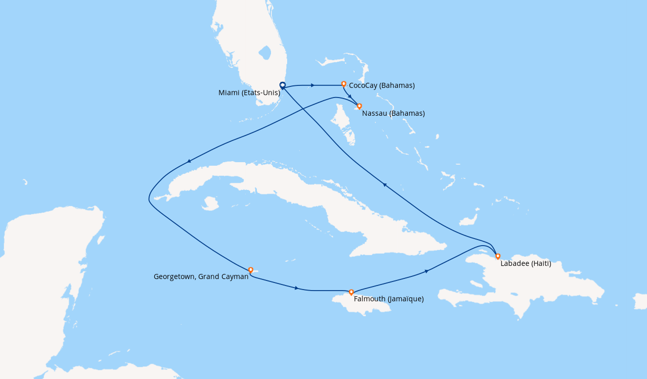 Croisiere au Caraibes , Nouvel an , bateau : Independence of the Seas, au départ de Fort Lauderdale (Port Everglades). 30 minutes après l’embarquement, nous nous retrouvons à la piscine pour regarder les matchs de football sur l’écran géant en attendant d’intégrer nos cabines. La cabine avec balcon sur le pont 6, à l’arrière bâbord du navire est un vrai plaisir que nous savourons pour la première fois. Nos repas sont réservés à 18h00 dans la salle à manger principale, pont N°4. Les plats sont délicieux! Nous profitons d’une ambiance élégante, d’un large choix, de serveurs toujours heureux d'accueillir nos demandes. Nous prenons nos petits déjeuners dans le Buffet Windjammer. Grands choix! Beaucoup de places! Rien à redire! Pour une collation ou un repas à tout moment, le lieu idéal est le ‘Sorrento Pizza’. Le spectacle sur glace réunit un ensemble d’artistes virtuoses pour un spectacle énergique, coloré, sur la patinoire du Studio B. Nos garçons ont passé de bons moments dans le bar karaoké, et se sont fait de nouveaux amis, mais ils ont aussi apprécié d’autres distractions gratuites comme, la piscine ; le mur d'escalade; le basket-ball ; le mini golf ; la patinoire dans laquelle on peut disposer gratuitement de patins. Personnellement, je ne peux ne pas comprendre les frustrés grincheux qui viennent sur les forums de ce genre pour se plaindre de chaque petit détail. Les seuls visages tristes que l’on peut voir sur Independence, sont ceux des passagers qui retournent à la vie réelle.