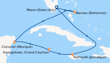 Croisière en Janvier à destination des Caraïbes de l'Ouest, embarquement à Fort Lauderdale (Port Everglades) La cabine avec bacon sur le côté bâbord est spacieuse, claire bien agencée. L’intendant responsable de son entretien est sympathique, serviable, il fait du bon travail. A l’occasion de l’anniversaire de mon mari, nous avons dîner dans le restaurant de spécialités Giovanni, il offre une cuisine familiale basée sur d’excellents menus traditionnels italiens. Les serveurs sont charmants, attentionnés, ils se sont prêté au jeu en entonnant à tue-tête le "Happy Birthday". Dans le British Pub, le serveur ‘Ralph’ est un garçon génial qui nous interpelle par notre prénom en nous proposant notre boisson préférée. Nous avons pris la plupart de nos repas dans la Salle à manger principale installés à la table 308, la cuisine est savoureuse, variée, les serveurs sont accueillants, serviables, ils connaissaient le nom de chaque convive dès le premier repas. Les animateurs sont dynamiques, gais, pleins de bonnes idées pour nous distraire efficacement. Chaque matin, je me suis beaucoup amusée avec la Zumba au bord de la piscine animée par Tom, plein de ressources pour nous motiver sur des musiques entrainantes. Le personnel de la réception du service clients, et les guides qui ont accompagné nos visites, sont très compétents. J’ai deux reproches à faire sur ce séjour : beaucoup trop d’activités sont en supplément par rapport à nos croisières précédentes où elles étaient incluses ; le buffet ferme trop tôt, si on veut une collation tard le soir, il faut encore payer un supplément.