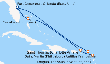 Croisière en Janvier à destination des Caraïbes, embarquement à San Juan. Nous avons réservé cette croisière en dernière minute car elle offrait le prix et l’itinéraire que nous recherchions : un seul jour de mer, les autres jours ponctués par des escales dans des lieux paradisiaques avec de belles plages. C’est un peu fatiguant sur la longueur, car on n’a pas le temps de décompresser, mais tellement extraordinaire qu’on oubli la fatigue. Le navire est bien entretenu malgré son âge, mais il montre tout de même des signes de vétusté. Les animateurs proposent de nombreuses activités, les spectacles sont supers avec des artistes étonnants, notamment le talentueux pianiste Anselmo Boles. Il y a plusieurs piscines, des jacuzzis, un solarium. Même pendant la journée en mer, nous ne nous sommes jamais sentis à l’étroit. C’est vraiment cool d’être assis dans le jacuzzi en regardant le film sur écran gant, à la belle étoile. Nous sommes d’avis que cette croisière est d’un bon rapport qualité/prix avec un bel itinéraire, des divertissements sympas, de nombreuses activités, des fêtes nocturnes bien organisées.