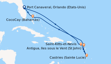Croisière en Janvier à destination des Caraïbes, embarquement à San Juan. Nous avons réservé cette croisière en dernière minute car elle offrait le prix et l’itinéraire que nous recherchions : un seul jour de mer, les autres jours ponctués par des escales dans des lieux paradisiaques avec de belles plages. C’est un peu fatiguant sur la longueur, car on n’a pas le temps de décompresser, mais tellement extraordinaire qu’on oubli la fatigue. Le navire est bien entretenu malgré son âge, mais il montre tout de même des signes de vétusté. Les animateurs proposent de nombreuses activités, les spectacles sont supers avec des artistes étonnants, notamment le talentueux pianiste Anselmo Boles. Il y a plusieurs piscines, des jacuzzis, un solarium. Même pendant la journée en mer, nous ne nous sommes jamais sentis à l’étroit. C’est vraiment cool d’être assis dans le jacuzzi en regardant le film sur écran gant, à la belle étoile. Nous sommes d’avis que cette croisière est d’un bon rapport qualité/prix avec un bel itinéraire, des divertissements sympas, de nombreuses activités, des fêtes nocturnes bien organisées.
