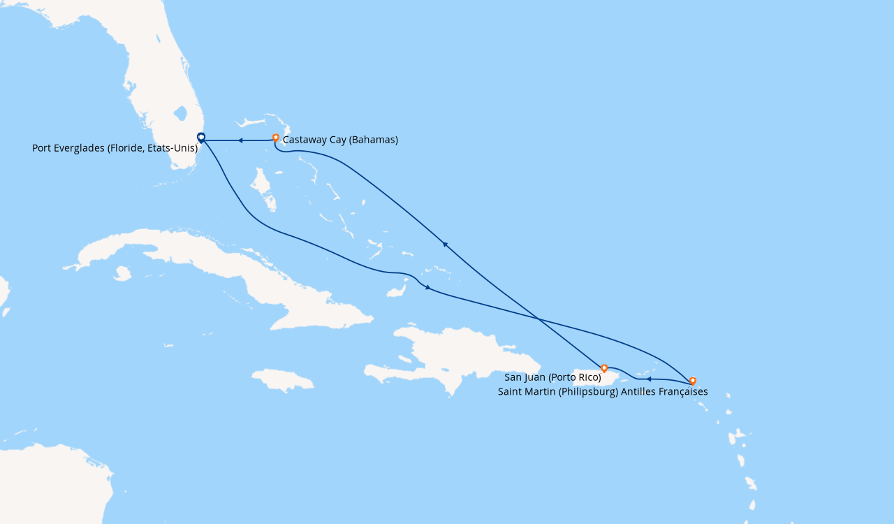 4 jours aux bahamas, mes enfants et moi on a été ravis du séjour ! Nous avions choisi cette croisière parce que notre fils adore Mickey et les personnages disney en général et la compagnie a bien su répondre à leurs attentes. Plein de petiotes attention, notamment dns les cabines ouù tous les jours quelqu'un dépose un petit cadeau. Le personnel était excellent, ils ont tout personnalisé, y compris l'excursion aux bahamas. Un grand bravo pour la soirée à thème Pirates des caraibes qui était géniale avec de vrais acteurs.