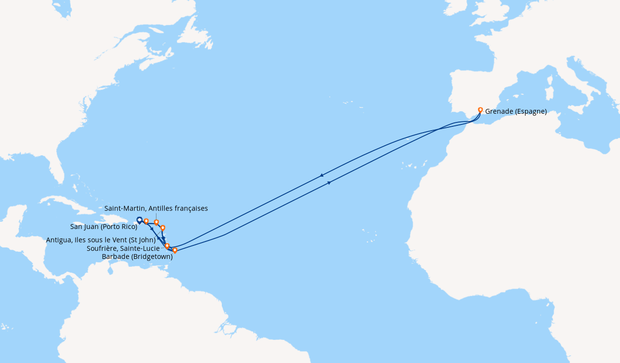 J'ai réussi à trouver une cabine sur le dernier itinéraie aux caraibes, avant que le bateau ne se positionne en irlande, j'avais entendu beaucoup de bien de cette compagnie au départ et je n'ai pas été particlièrement déçue ! l'itinéraire vraiment fantastique,je n'avais jamais visité les ports des Caraïbes orientales: Saint-Kitts, Martinique, Barbade, Antiqua. Saint Thomas. Grand Turks & Caicos.. et le temps était magnifique, mon agent de voyage m'a assuré que c'était la bonne période et la parole a été tenue! Le personnel du navire était aux petits soins mais la cabine était petite et le balcon n'avait pas de tabouret ce qui limite le temps passé à bronzer en solo. Bref très contente dans l'ensemble, mais la prochaine fois je tsterai royal carribean pour faire la comparaison.
