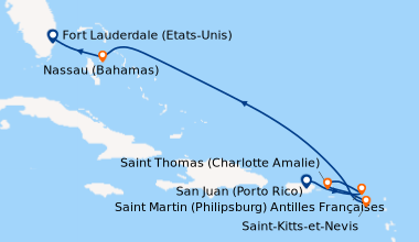 Croisière en Janvier, à destination des Caraïbes occidentales, embarquement à Tempas (Floride). Ce voyage est un merveilleux souvenir que nous avons partagé avec huit membres de notre famille pour fêter le 50e anniversaire de mes parents. Poses farniente au solarium, concours de plongeons dans la piscine, dégustation d’un cocktail sur fond musical de concert privé, bien calés au fond des gros canapés du salon le Schooner, ou soirées enflammées dans la discothèque panoramique, au rythme du dance floor, c'est le quotidien d’une journée à bord de Brillance Of The Seas. Une mention spéciale pour les explications avisées de nos guides lors des visites dans les ports d’étapes. Je vous recommande l’excursion Grand Cayman, ‘’ferme aux tortues et le tour de l’île’’, qui est intéressante, bien organisée. Il faut passer la visite de l'Enfer, capitale de l'île de Grand Cayman, petit village d'environ 60 habitants situé à 20 minutes de George Town, qui est un piège à touristes, pour finir la visite en beauté : tenir une tortue de la taille d'une grande pizza en la chatouillant pour la calmer, donner à manger aux requins, se faire prêter un masque, tubas, pour admirer la faune sous-marine, le lagon est plein de tortues et de poissons tropicaux ou on peut simplement profiter de la plage.