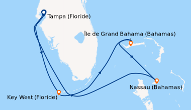 Croisière à destination des Bahamas au départ de Fort Lauderdale. Après une heure d’attente, nous sommes accueillis à bord du Constellation, sobre, élégant. Le personnel en gants blancs nous offre une coupe de champagne, pour ensuite nous guider vers notre cabine. La cabine balcon est située sur le pont N° 9. Elle est propre, claire, bien aménagée. Sur la table, une bouteille de champagne, une coupe de fruits frais, cadeau de bienvenue de la compagnie. L’espace est réduit, il est difficile de circuler aisément, cependant, il y a de nombreux rangements : armoire, dressing, tiroir sous le lit ; un coin salon, un bar. Notre steward Mickael est un jeune philippin, sympathique, dévoué qui entretient efficacement notre cabine. J’apprécie la piscine couverte de l’Aqua Spa ‘Oasis’ équipée de deux jacuzzis, avec son coin salon tellement agréable qu’il subit les inconvénients de son succès à certains moments de la journée: trop de monde, trop de bruit……Néanmoins, tôt le matin, j’adore un petit bain dans sa piscine d'eau de mer. A refaire.