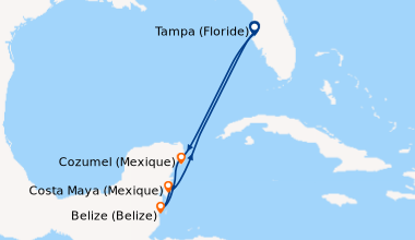 Croisière en Janvier, à destination des Caraïbes occidentales, embarquement à Tempas (Floride). Ce voyage est un merveilleux souvenir que nous avons partagé avec huit membres de notre famille pour fêter le 50e anniversaire de mes parents. Poses farniente au solarium, concours de plongeons dans la piscine, dégustation d’un cocktail sur fond musical de concert privé, bien calés au fond des gros canapés du salon le Schooner, ou soirées enflammées dans la discothèque panoramique, au rythme du dance floor, c'est le quotidien d’une journée à bord de Brillance Of The Seas. Une mention spéciale pour les explications avisées de nos guides lors des visites dans les ports d’étapes. Je vous recommande l’excursion Grand Cayman, ‘’ferme aux tortues et le tour de l’île’’, qui est intéressante, bien organisée. Il faut passer la visite de l'Enfer, capitale de l'île de Grand Cayman, petit village d'environ 60 habitants situé à 20 minutes de George Town, qui est un piège à touristes, pour finir la visite en beauté : tenir une tortue de la taille d'une grande pizza en la chatouillant pour la calmer, donner à manger aux requins, se faire prêter un masque, tubas, pour admirer la faune sous-marine, le lagon est plein de tortues et de poissons tropicaux ou on peut simplement profiter de la plage.