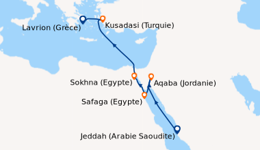 Si transit en Arabie Saoudite , un "visa électronique de transit par mer de 96 heures" est nécessaire pour entrer dans le pays en payant des frais d'administration/assurance à partir de 22,00 USD (selon l'assurance choisie), dont le lien est : https://visa.mofa.gov.sa/