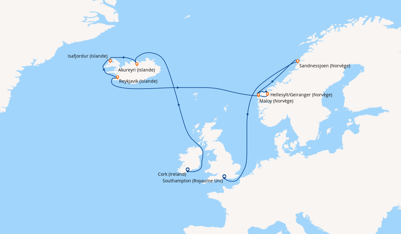À partir de janvier 2025, les autorités islandaises ont imposé une nouvelle taxe d'infrastructure.Ainsi, chaque passager entrant en Islande devra s’acquitter d’une taxe de 1,600 ISK (environ 11€) par jour passé dans les ports islandais. Par conséquent, pour un itinéraire comprenant 4 nuits dans des ports islandais, le montant total s’élève à 6 400 ISK par personne (environ 43 €), et à 8 000 ISK par personne (environ 54 €) pour un séjour de 5 nuits.. Pour plus de détails, visitez le site Lodging tax | Skatturinn - skattar og gjöld