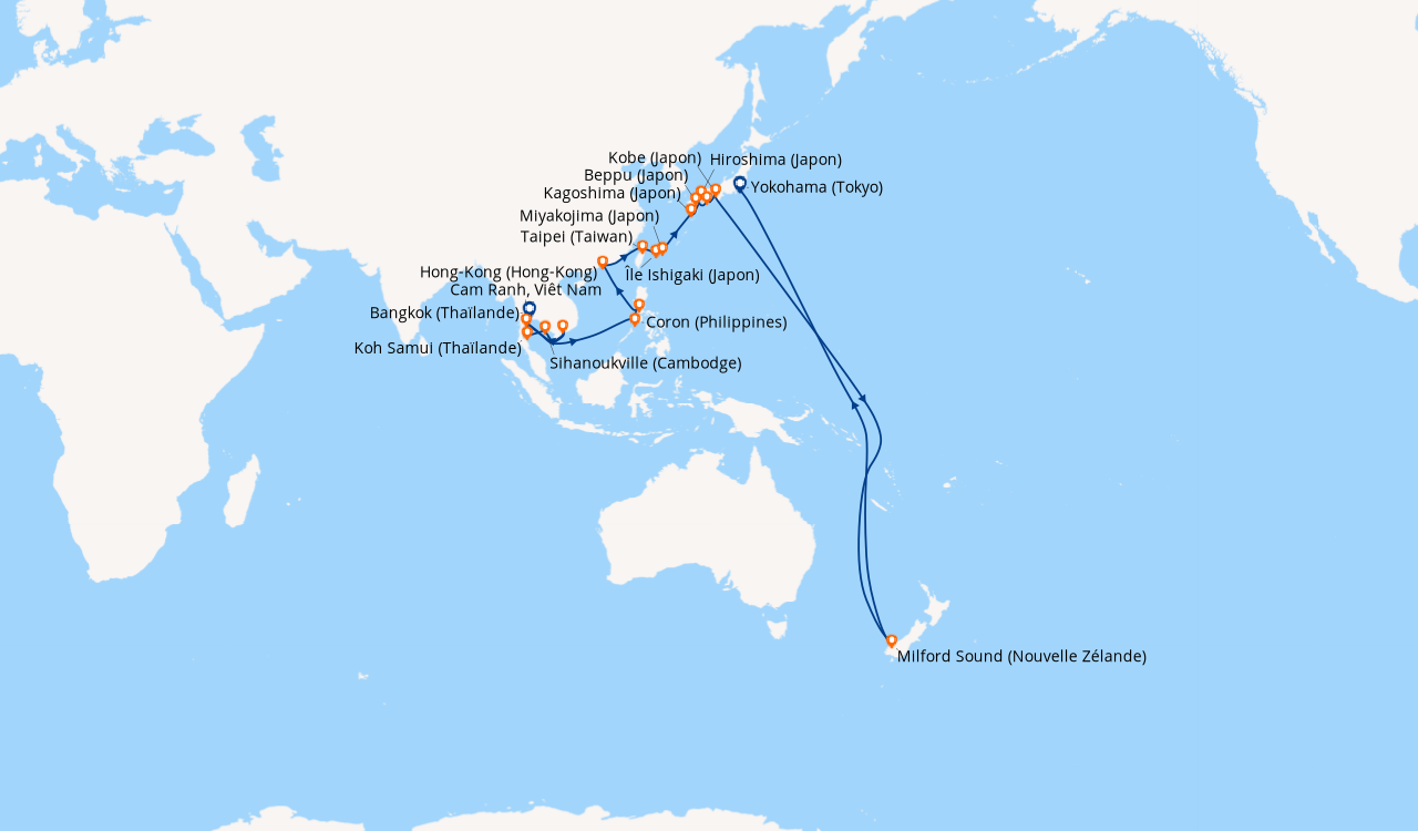 Une taxe locale japonaise (env. 1 000 ¥/passager) peut être appliquée pour les croisières faisant escale au Japon. Elle peut être facturée avant départ ou prélevée à bord selon la compagnie.