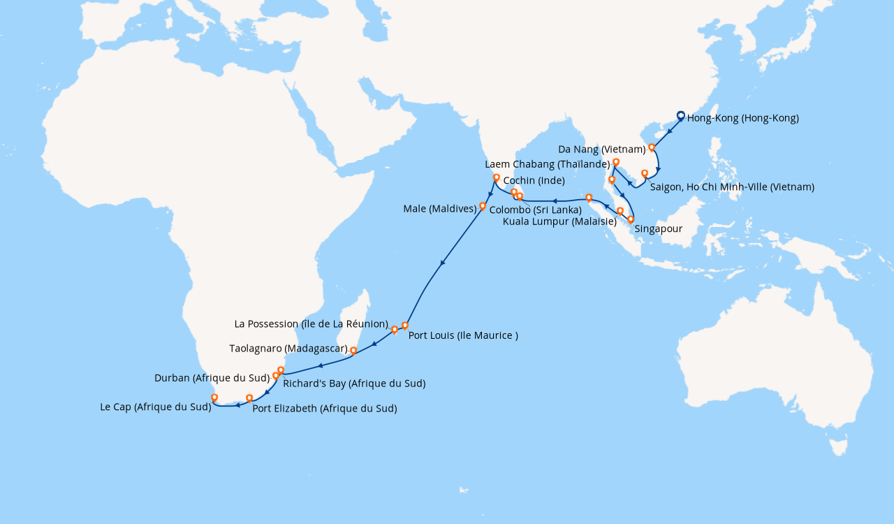 Pour les escales au Vietnam, en Chine et en Indonésie, un visa de transit, dont s'occupent en général les compagnies de croisière, est obligatoire et sera facturé dans le cadre de vos dépenses à bord.
