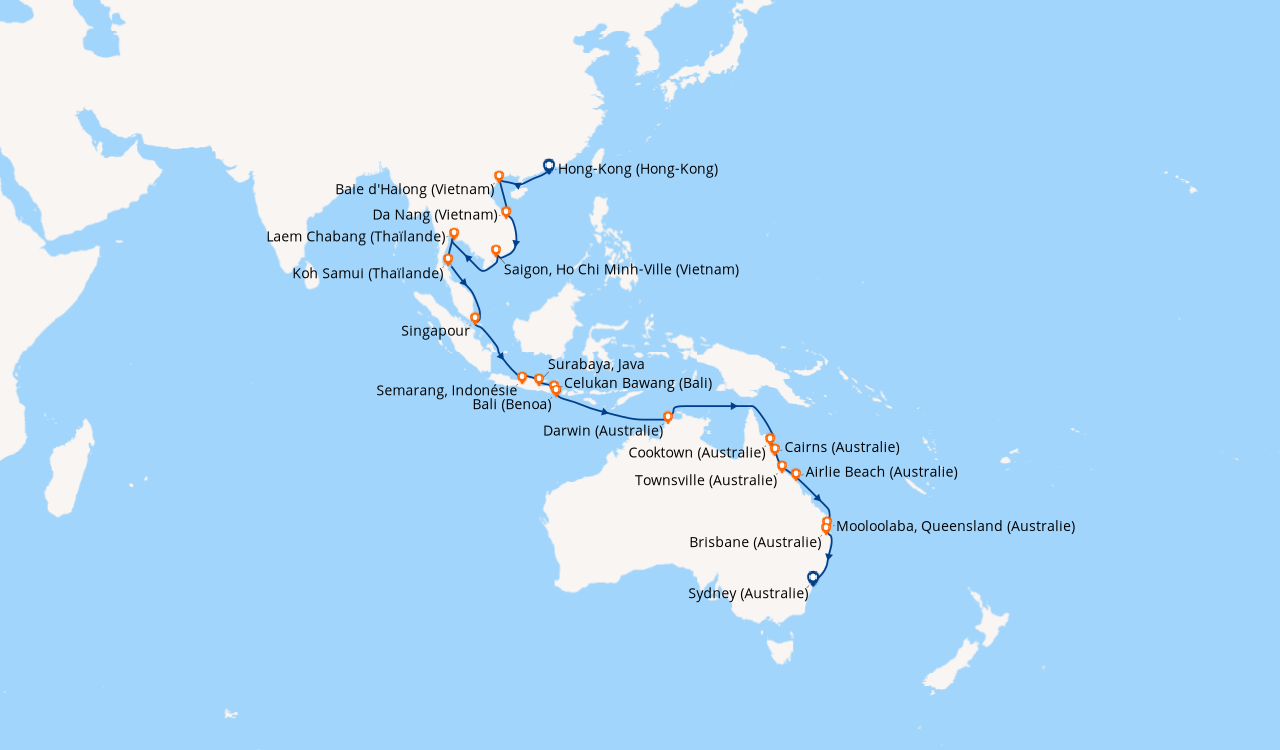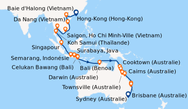 Pour les escales au Vietnam, en Chine et en Indonésie, un visa de transit, dont s'occupent en général les compagnies de croisière, est obligatoire et sera facturé dans le cadre de vos dépenses à bord.