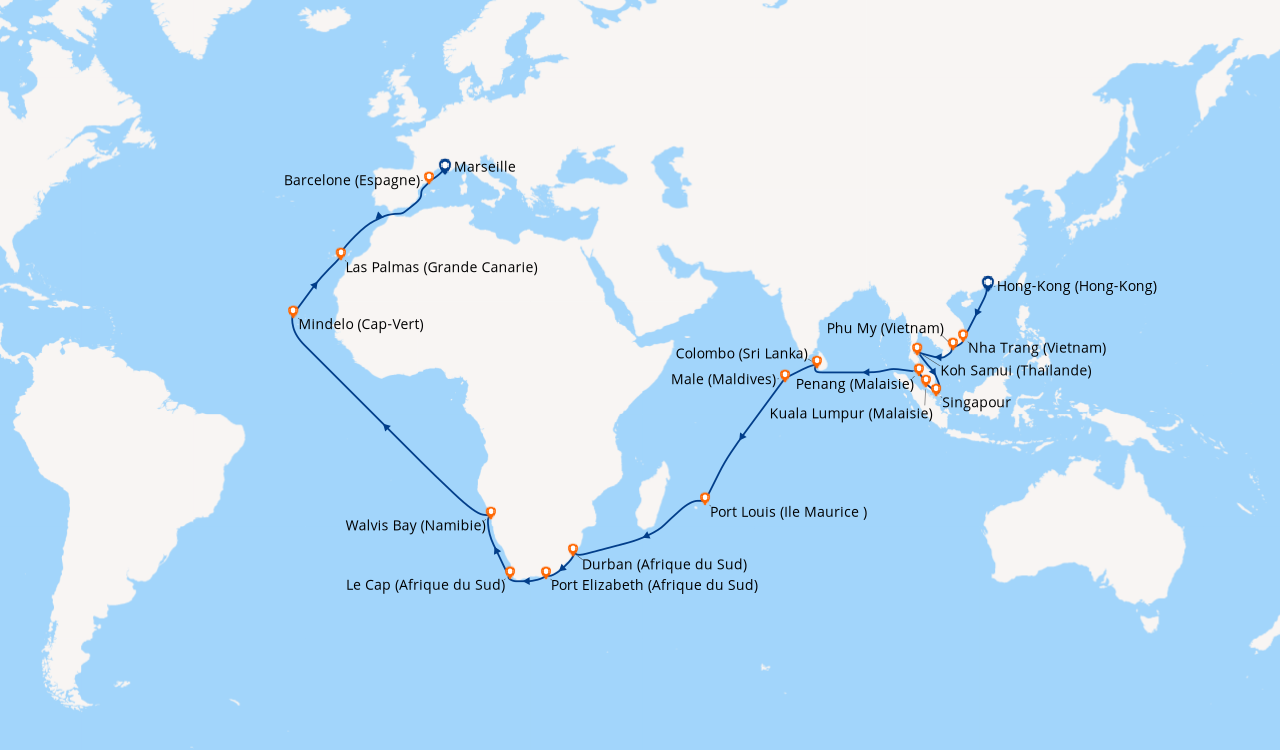 Pour les escales au Vietnam, en Chine et en Indonésie, un visa de transit, dont s'occupent en général les compagnies de croisière, est obligatoire et sera facturé dans le cadre de vos dépenses à bord.