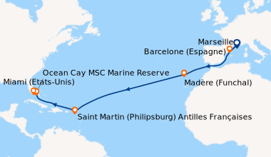 Cette première croisière solo avec MSC Croisières aux Caraïbes m’a inquiété avant le départ. Finalement tout s’est bien déroulé avec une arrivée sereine à bord. J’ai reservé une cabine bien équipée donc confortable. Certains restaurants proposent des repas gastronomiques. Les loisirs sont variés, il suffit de se prêter au jeu. Les spectacles sont divertissants. Un personnel haut de gamme, à tous les moments de la journée. Les excursions sont satisfaisante. Je garderai le beau souvenir d’une première croisière pour mes 40 printemps.