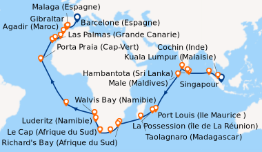 Pour les escales au Vietnam, en Chine et en Indonésie, un visa de transit, dont s'occupent en général les compagnies de croisière, est obligatoire et sera facturé dans le cadre de vos dépenses à bord.