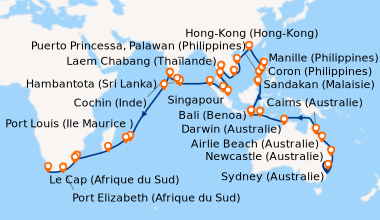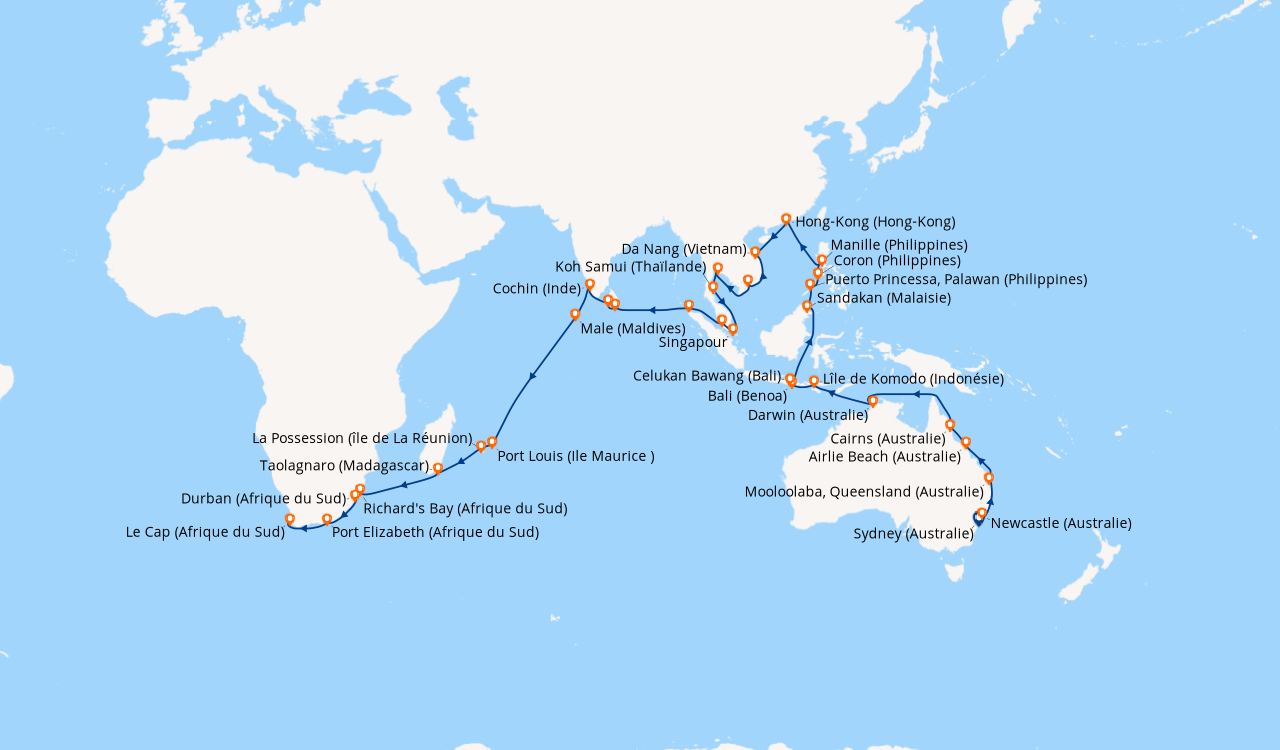Pour les escales au Vietnam, en Chine et en Indonésie, un visa de transit, dont s'occupent en général les compagnies de croisière, est obligatoire et sera facturé dans le cadre de vos dépenses à bord.