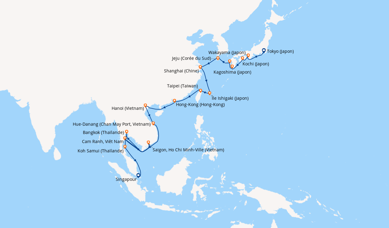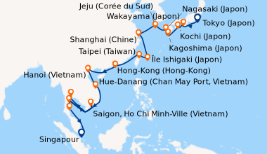 Pour les escales au Vietnam, en Chine et en Indonésie, un visa de transit, dont s'occupent en général les compagnies de croisière, est obligatoire et sera facturé dans le cadre de vos dépenses à bord.