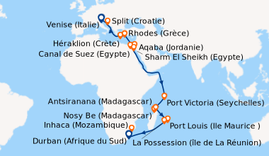 Croisière en Août à destination de la Grande Bleue au départ de Venise. Le MSC Armonia propose un itinéraire qui correspond parfaitement à nos attentes de découvertes méditerranéennes, les points fort étant : Kotor (Montenegro), Mykonos, Santorin. L’embarquement bien organisé, ne génère que très peu d’attente. Nous avons pour le forfait boisson pour notre grande famille sans nous ruiner. Le forfait est d’un prix raisonnable avec un choix conséquent : vins rouges, blancs, mousseux de bonne qualité, servis avec la particularité de laisser la bouteille à notre disposition pendant le repas, plutôt que le service au verre. Le buffet a bien rempli sa mission de combler nos estomacs délicats et affamés avec entre autres de succulentes pizzas, pâtes fraîches disponibles à tous moments, sans le stress de trouver une place assise. Le restaurant, est ma deuxième option préférée pour se restaurer aux saveurs de la méditerranée avec notamment une grande variété de poissons. Les spectacles du théâtre sont intéressants, mais limités au genre music hall en raison de la grande diversité linguistique des spectateurs. Les activités sur le pont de la piscine sont assez nombreuses pour occuper tout le monde dans la journée. Le soir, c’est ‘open bar’, ‘fiesta à gogo’, la piste de danse de la discothèque devient le témoin d'une grande partie de nos folles chorégraphies. A bord, les multiples nationalités s’intègrent parfaitement à la bonhomie italienne largement représentée. Un bel ensemble de générations se côtoient, les plus jeunes contribuant à dynamiser l’ambiance. Le voyage en catamaran de Split à Brač justifie le coût élevé de l’excursion. Le seul inconvénient de la croisière est la lenteur du service. Le personnel fait de son mieux mais ils ne sont pas assez nombreux pour faire face aux moments de rush. Une escapade avec MSC croisieres que je vous recommande.