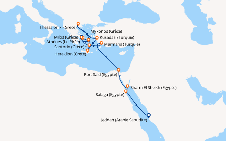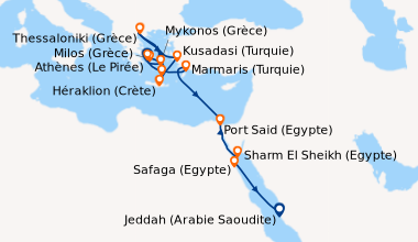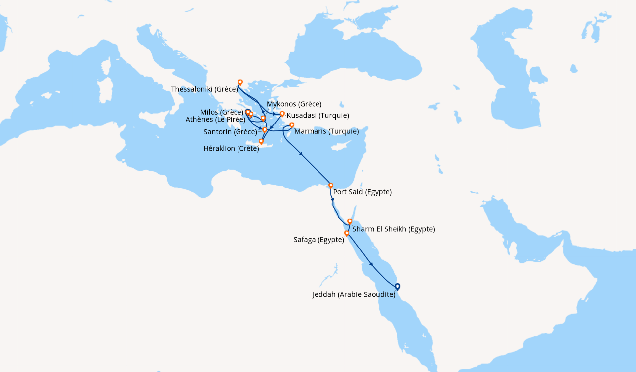 Si embarquement en Egypte, et si les hôtes ne sont pas en mesure de se procurer le visa à entrées multiples en ligne avant le départ, ils peuvent acquérir la première vignette de visa d'entrée directement à l'aéroport d'Hurghada dans les bureaux du gouvernement, en payant l'équivalent de USD 25,00. La deuxième vignette de visa d'entrée requise à la fin de la croisière, lorsque le navire retourne en Égypte, doit être achetée directement à bord au prix de 29 euros. Cette solution alternative n'est pas valable pour les nationalités nécessitant un visa pré-émis par une ambassade ou un consulat.
