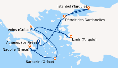 Septembre aux couleurs de la Méditerranée, au départ de Savone (Italie). Les excursions sont intéressantes, car l’itinéraire permet de faire escale dans 4 pays différents de la Méditerranée (Grèce, Israël, Turquie et Italie) avec assez de temps pour faire une visite approfondie, sur la journée, mais elles sont bien trop chères. Nous les avons tout de même achetées pour ne pas être inquiétés par les imprévus. Belle ballade en bleue !