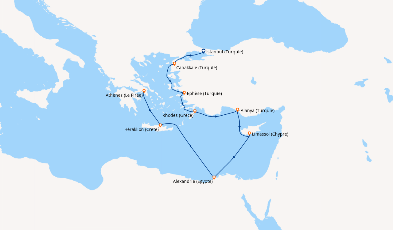 Si embarquement en Egypte, et si les hôtes ne sont pas en mesure de se procurer le visa à entrées multiples en ligne avant le départ, ils peuvent acquérir la première vignette de visa d'entrée directement à l'aéroport d'Hurghada dans les bureaux du gouvernement, en payant l'équivalent de USD 25,00. La deuxième vignette de visa d'entrée requise à la fin de la croisière, lorsque le navire retourne en Égypte, doit être achetée directement à bord au prix de 29 euros. Cette solution alternative n'est pas valable pour les nationalités nécessitant un visa pré-émis par une ambassade ou un consulat.
