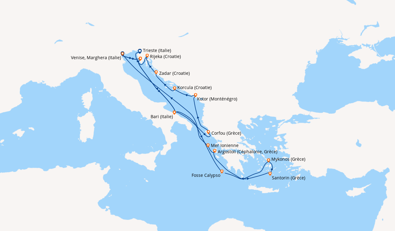 A la découverte des îles grecques en avril. Aucune place pour l’ennui, car les animateurs s’organisent pour divertir toutes les classes d’âges: cours de cuisine jeux, danse, aérobic, …. Avec une escales par jour, il y a la possibilité de s’inscrire à différentes excursions (payantes), ce n’est pas donné (à 5 ça chiffre vite), nous avons préféré faire des visites libres. Venise la romantique, nous attendait avec ses palais, églises, ponts, canaux et son joyau, la Basilique Saint Marc; En Italie, Bari cernés de remparts antiques, ressemble à une capitale historique baignée par la mer adriatique; En Grèce, Corfou, bordée par les plages de sables blancs, les aux turquoises de la mer ionienne; Santorin, (ma préférée), étonnante île volcanique au sable noir avec son point de vue culminant qui permet d’admirer les îles voisines; Athènes avec son Acropole et sa ville haute fortifiée; En Croatie, Dubrovnik, où chaque chemin mène vers un chef-d’œuvre d’architecture : églises, fontaines, palais et monastères cernés de remparts dont la visite est incontournable. Que de merveilleux souvenirs ! Mathide