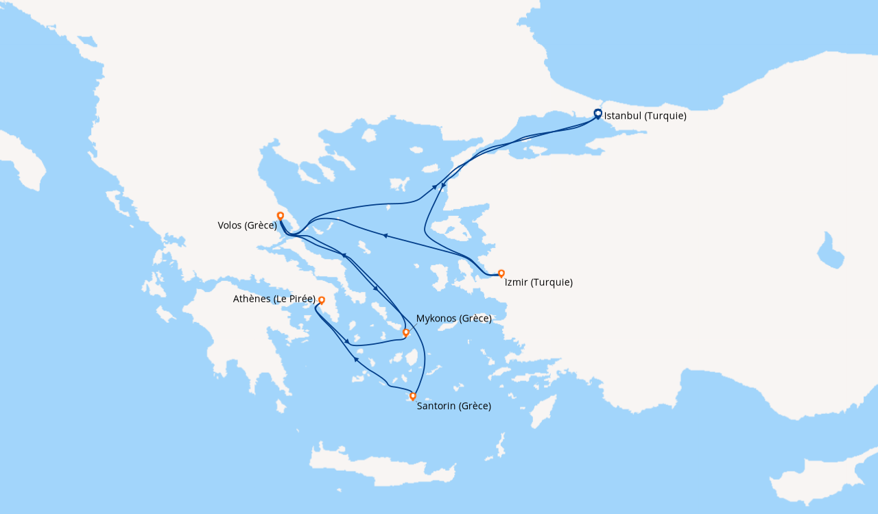 Septembre aux couleurs de la Méditerranée, au départ de Savone (Italie). Les excursions sont intéressantes, car l’itinéraire permet de faire escale dans 4 pays différents de la Méditerranée (Grèce, Israël, Turquie et Italie) avec assez de temps pour faire une visite approfondie, sur la journée, mais elles sont bien trop chères. Nous les avons tout de même achetées pour ne pas être inquiétés par les imprévus. Belle ballade en bleue !