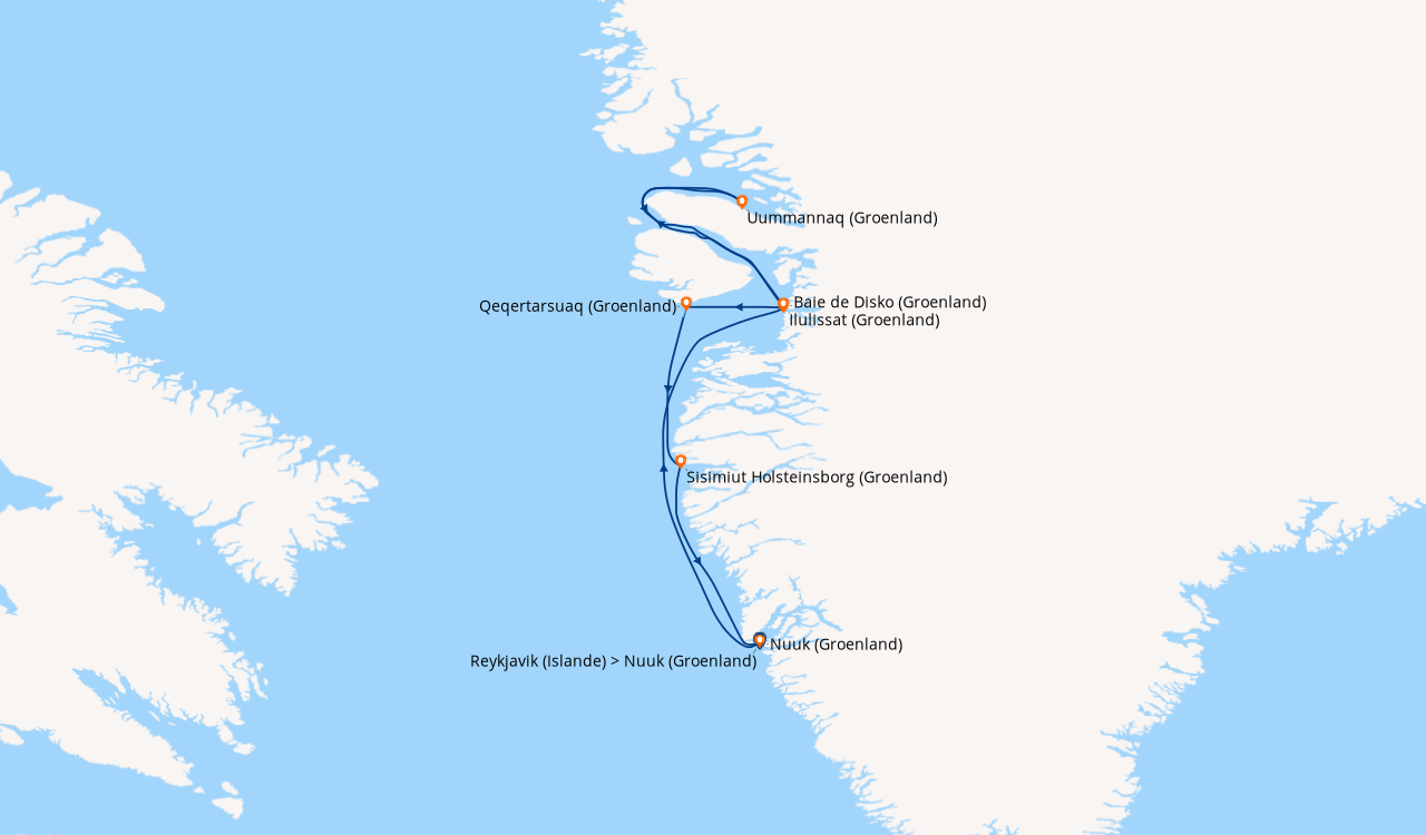 Départ de Reykjavik (Islande) > Nuuk (Groenland)
