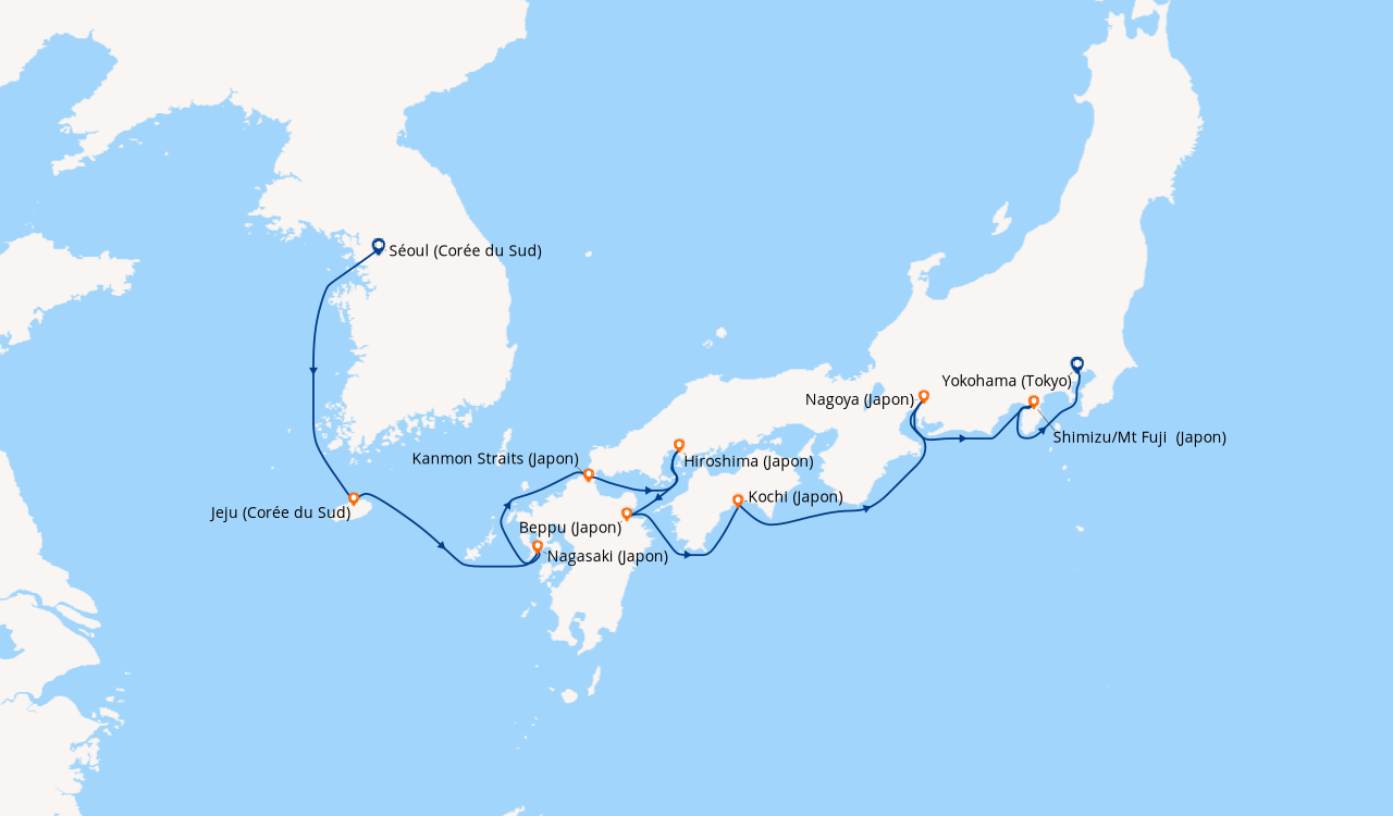 Une taxe locale japonaise (env. 1 000 ¥/passager) peut être appliquée pour les croisières faisant escale au Japon. Elle peut être facturée avant départ ou prélevée à bord selon la compagnie.