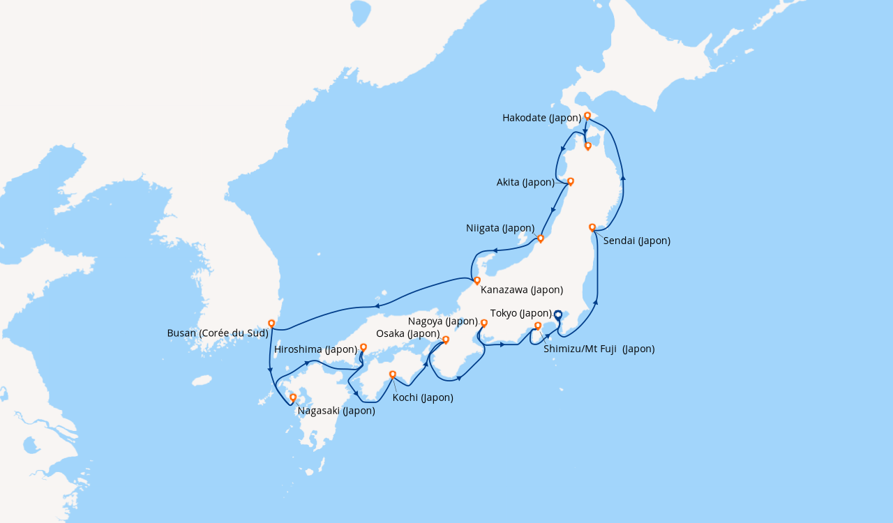 Une taxe locale japonaise (env. 1 000 ¥/passager) peut être appliquée pour les croisières faisant escale au Japon. Elle peut être facturée avant départ ou prélevée à bord selon la compagnie.