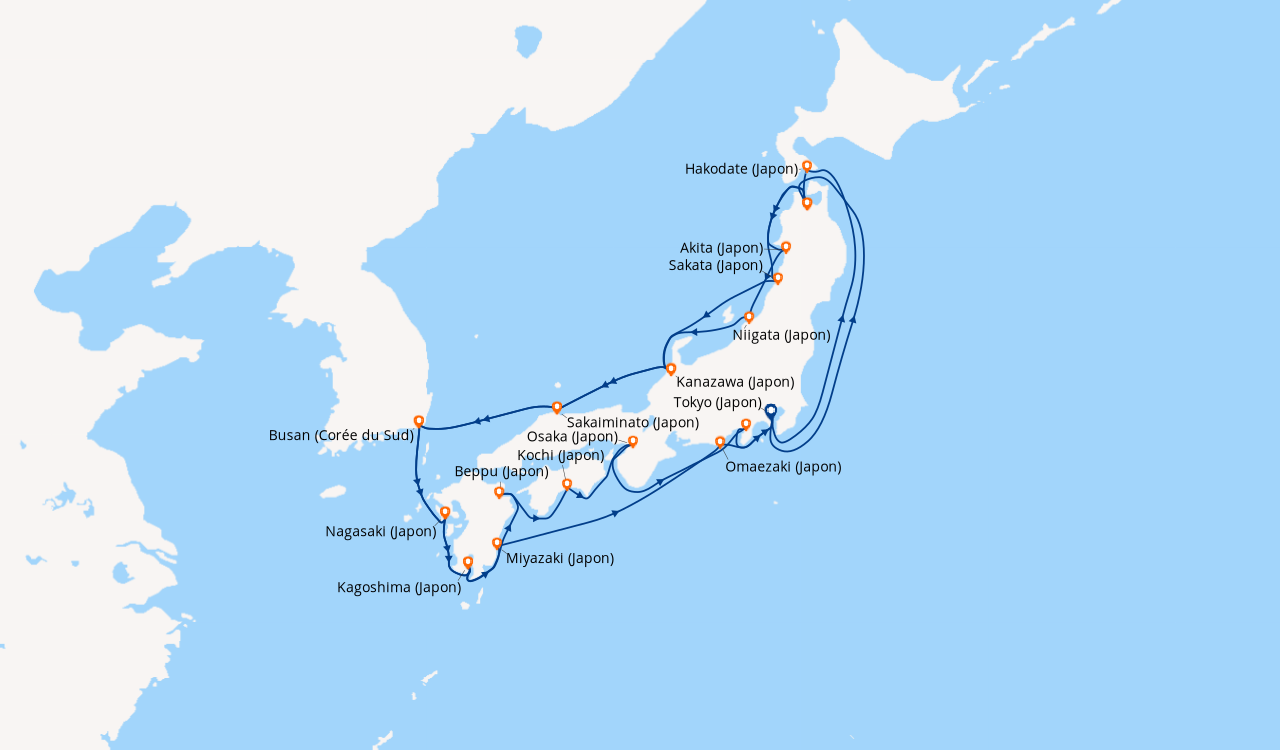 Une taxe locale japonaise (env. 1 000 ¥/passager) peut être appliquée pour les croisières faisant escale au Japon. Elle peut être facturée avant départ ou prélevée à bord selon la compagnie.